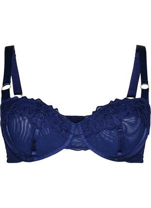 Elegant balconette bra with underwire and wide, adjustable shoulder straps and high sides for maximum support. The bra is made from soft mesh with feminine lace details and satin ribbon on the cups. The bra is designed with an extra layer of mesh at the side of the cups, which provides good support and lifts the bust.