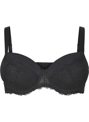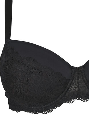 Underwire bra with delicate lace on the cups and center panel, featuring padded cups that shape and lift the bust, creating a symmetrical silhouette. The bra has wide adjustable straps and high side seams for maximum comfort.