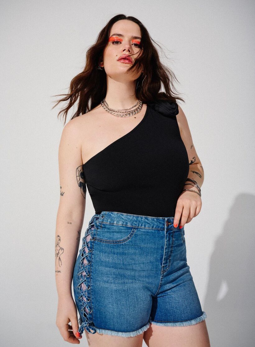 Tight-fitting denim shorts with a raw hem and cool detailing with drawstring and mesh sides that can be adjusted for an optimal fit. These shorts are made from a stretchy cotton fabric with a high waist.