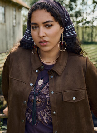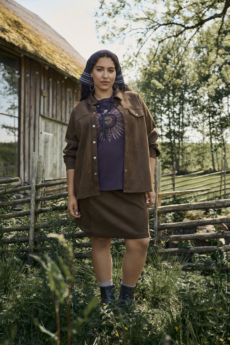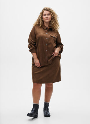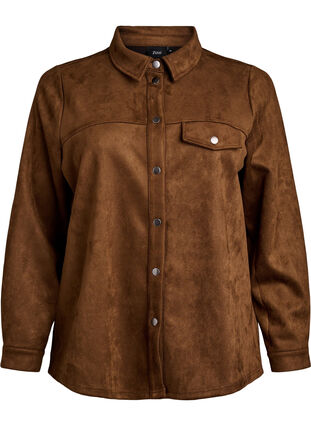 Shirt in faux suede with a comfortable, stretchy finish and a regular fit. The shirt features a classic shirt collar, full-length press studs, and long sleeves with cuffs. Designed with decorative chest flaps on the front.