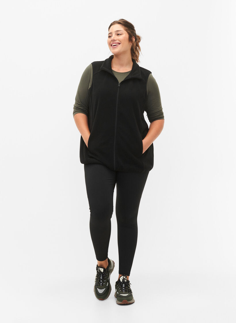 Sleeveless vest in soft and warm fleece material, ensuring optimal comfort and insulation in cooler weather conditions. The vest is closed with a zipper and has pockets on the sides.