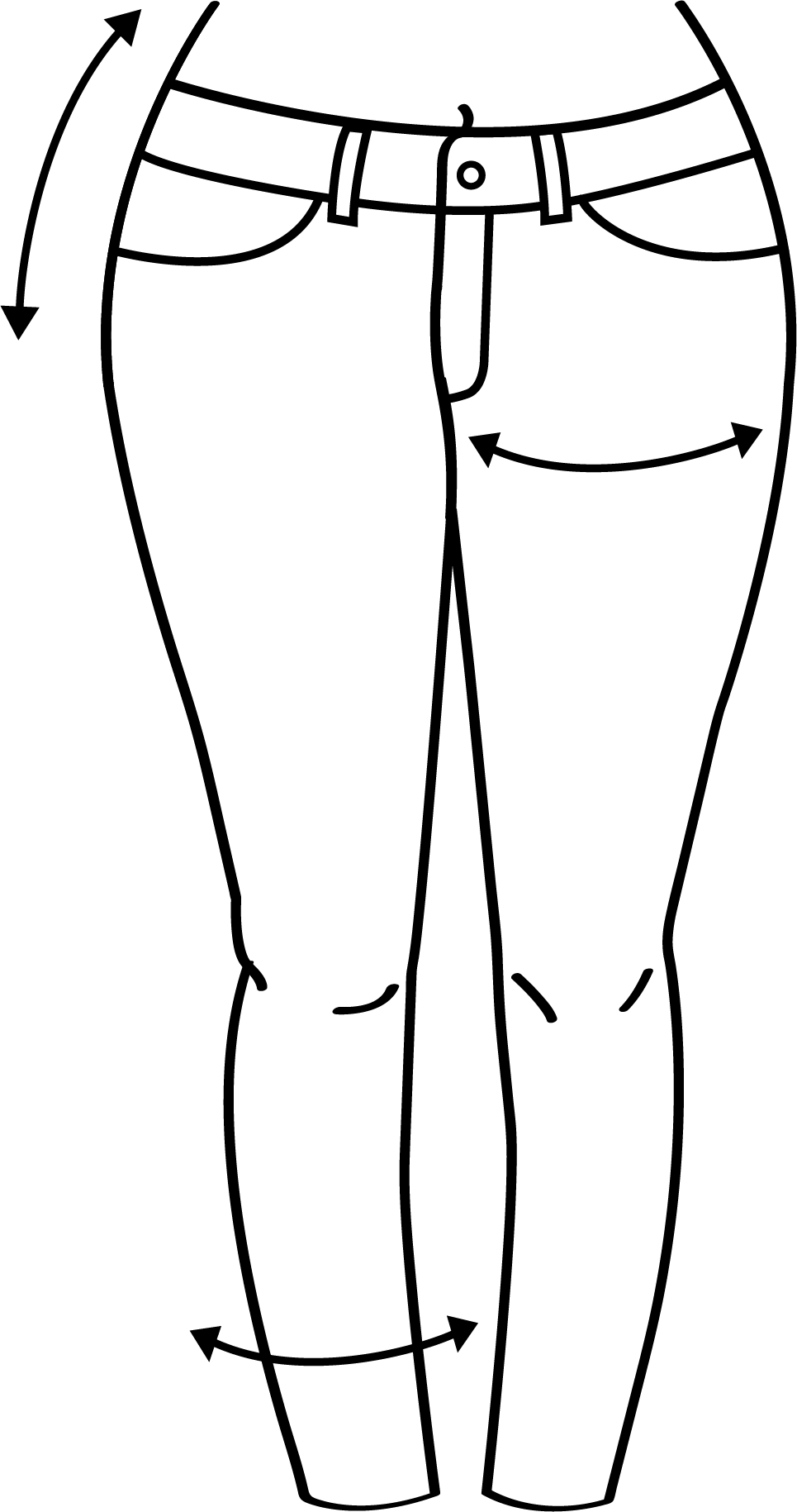 You need to combine your waist and hip measurements to find the right size in the jeans and trousers size guide below. Both our jeans sizes and trousers sizes run from 40, which corresponds to a size extra small, to size 64, which corresponds to size XXXL in our shop.
