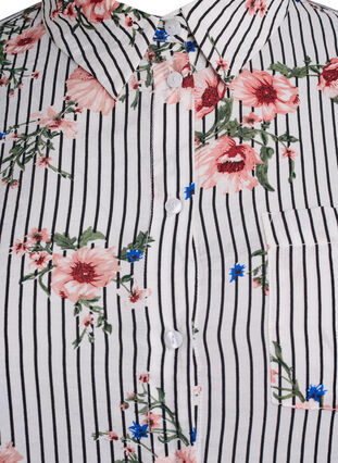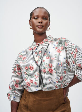 Shirt in a light and soft viscose quality with a feminine floral print combined with narrow stripes. The shirt has a loose fit, classic shirt collar, button fastening at the front, chest pocket, and long sleeves with cuffs.