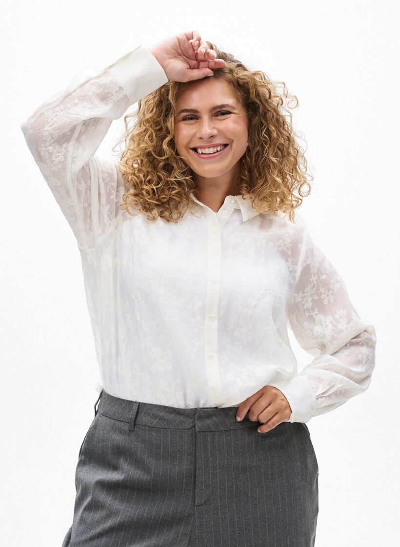 Shirt with tone-on-tone pattern, Vanilla, Model