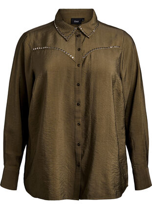 Shirt in a lightweight, woven viscose quality with decorative studs along the collar and front yoke, giving a western-inspired look. The style has a regular fit with a classic collar, button fastening at the front, and long sleeves with cuffs.