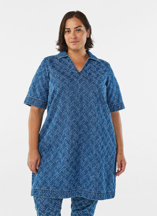 Short denim dress with textured pattern