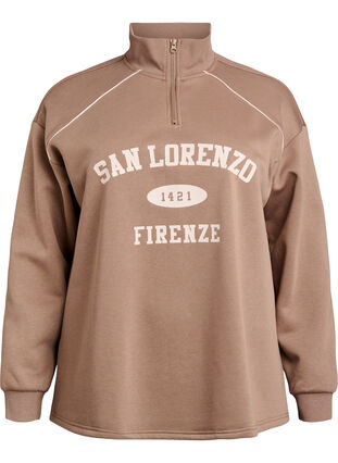 Casual sweatshirt with a sporty college look, made from a soft jersey quality with a brushed interior. The style features a loose and comfortable fit with a high collar and short zipper, long sleeves with ribbed cuffs, and contrast stitching along the shoulders. The college-inspired front print with the text "San Lorenzo - 1421 - Firenze" and the contrast-colored stitching emphasize the sporty and relaxed style.