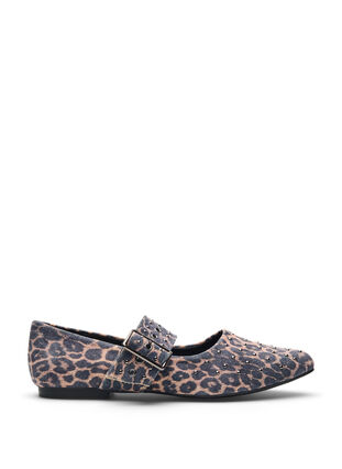 Wide fit - Leopard print ballerina with buckle and studs