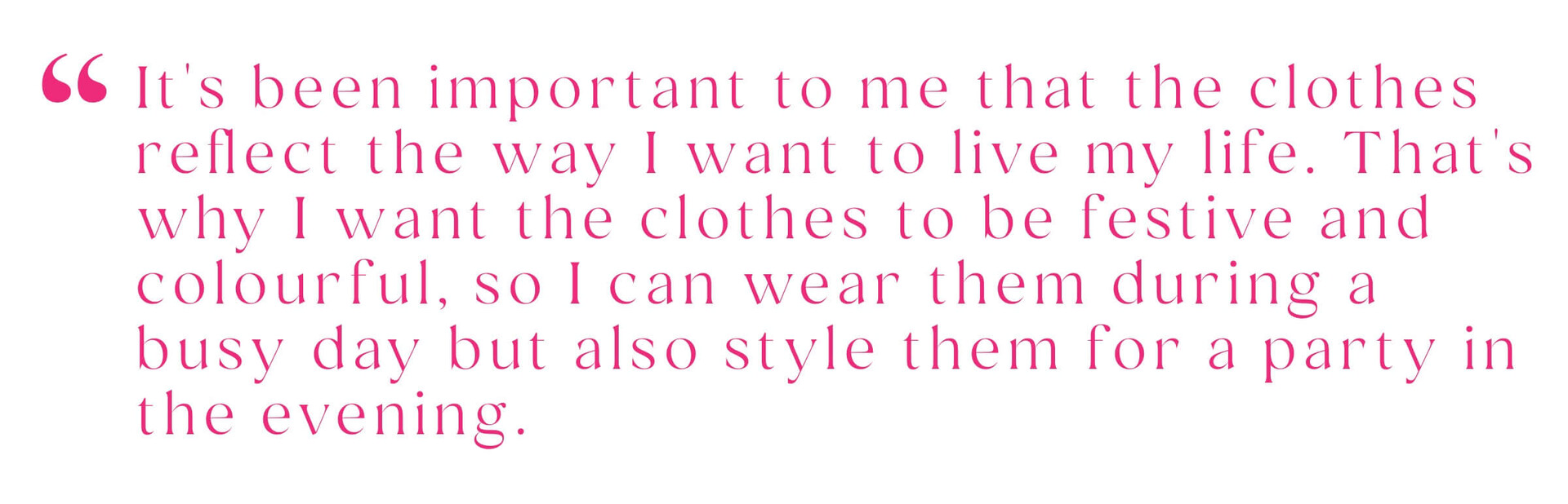 "My style is colourful, but it hasn't always been. In my 20s there was a shift, and since then I've started to play a lot more with colours, prints and feminine expression. With this collection, I want to invite you into my colourful world."