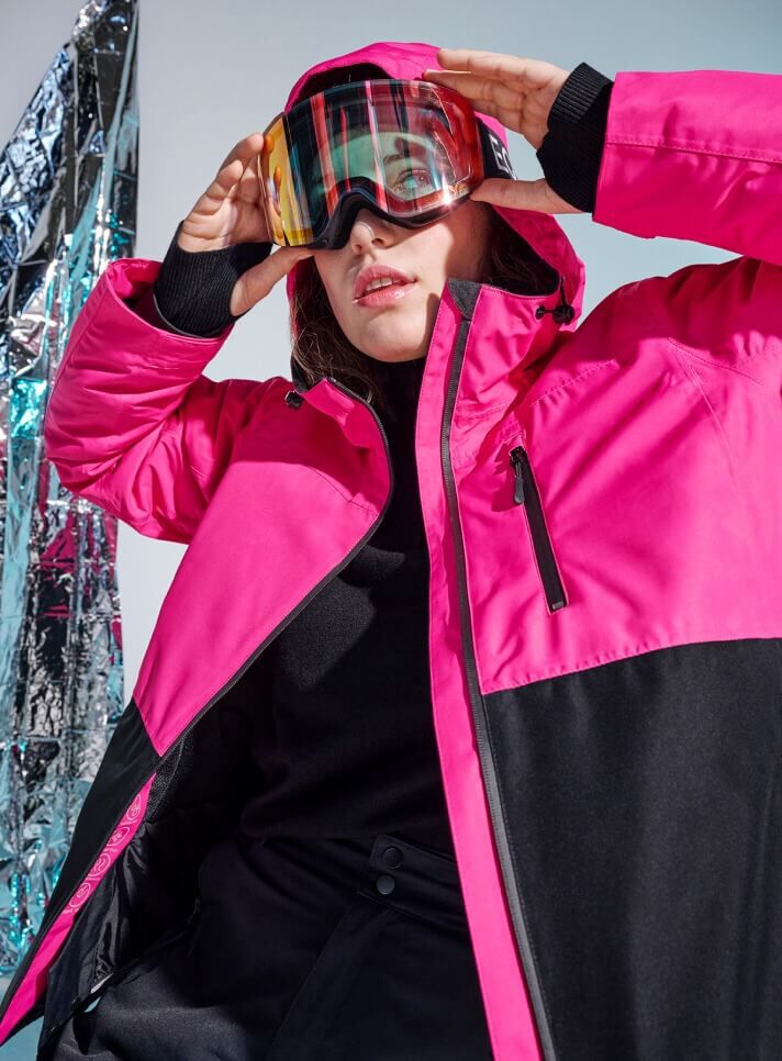 If you want to add personality to your ski outfit, consider colourful ski jackets or patterned designs. A bold pink ski jacket, for example, adds visibility and style.