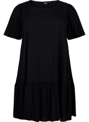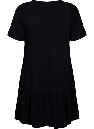Short-sleeved loose-fitting dress with ruched shoulder detail, round neck and a cutline at the bottom that creates a beautiful a-shaped silhouette. This dress contains 100% LENZING™ ECOVERO™ Viscose fibres, which support natural softness and drape.