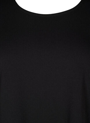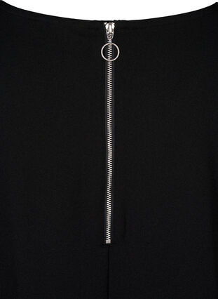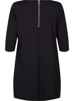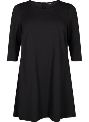 Short A-shaped dress with 3/4 sleeves and round neck with decorative zip detail on the back. The dress is made of stretchy jersey for a comfortable fit.