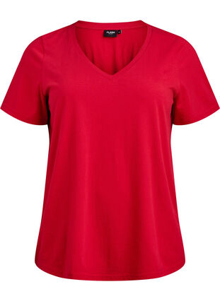 Solid coloured T-shirt in a simple and classic design with short sleeves and a V-neck, as well as a regular fit.
