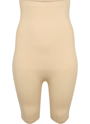 Shapewear shorts with a high waist, designed to shape and lift, providing a smooth and defined silhouette under clothes. The shorts are made in a seamless material with soft, elasticated hems that ensure maximum comfort and movement. Internal silicone bands at the waist and leg openings keep the shorts in place all day without rolling up or slipping down. The targeted compression lifts and shapes the bottom while slimming the waist, hips, and thighs.