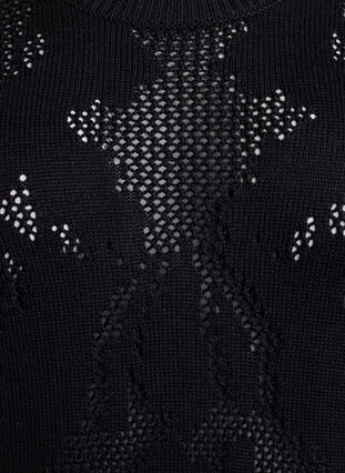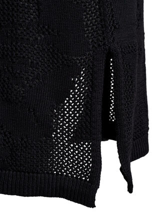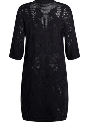 Knee-length knitted dress in a soft cotton blend with an openwork floral pattern, creating a feminine and airy look. The dress features a round neckline, 3/4 sleeves, and a regular fit with side slits.