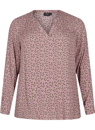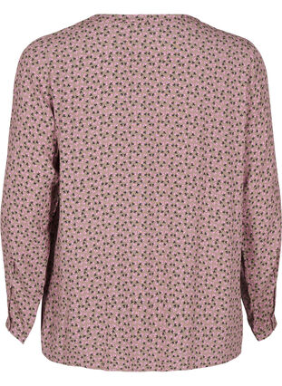 Elegant blouse with an all-over print and a V-neck. The blouse has long sleeves that fasten with a button and has a regular fit. This blouse contains 51% LENZING™ ECOVERO™ Viscose fibers, which support natural softness and drape.